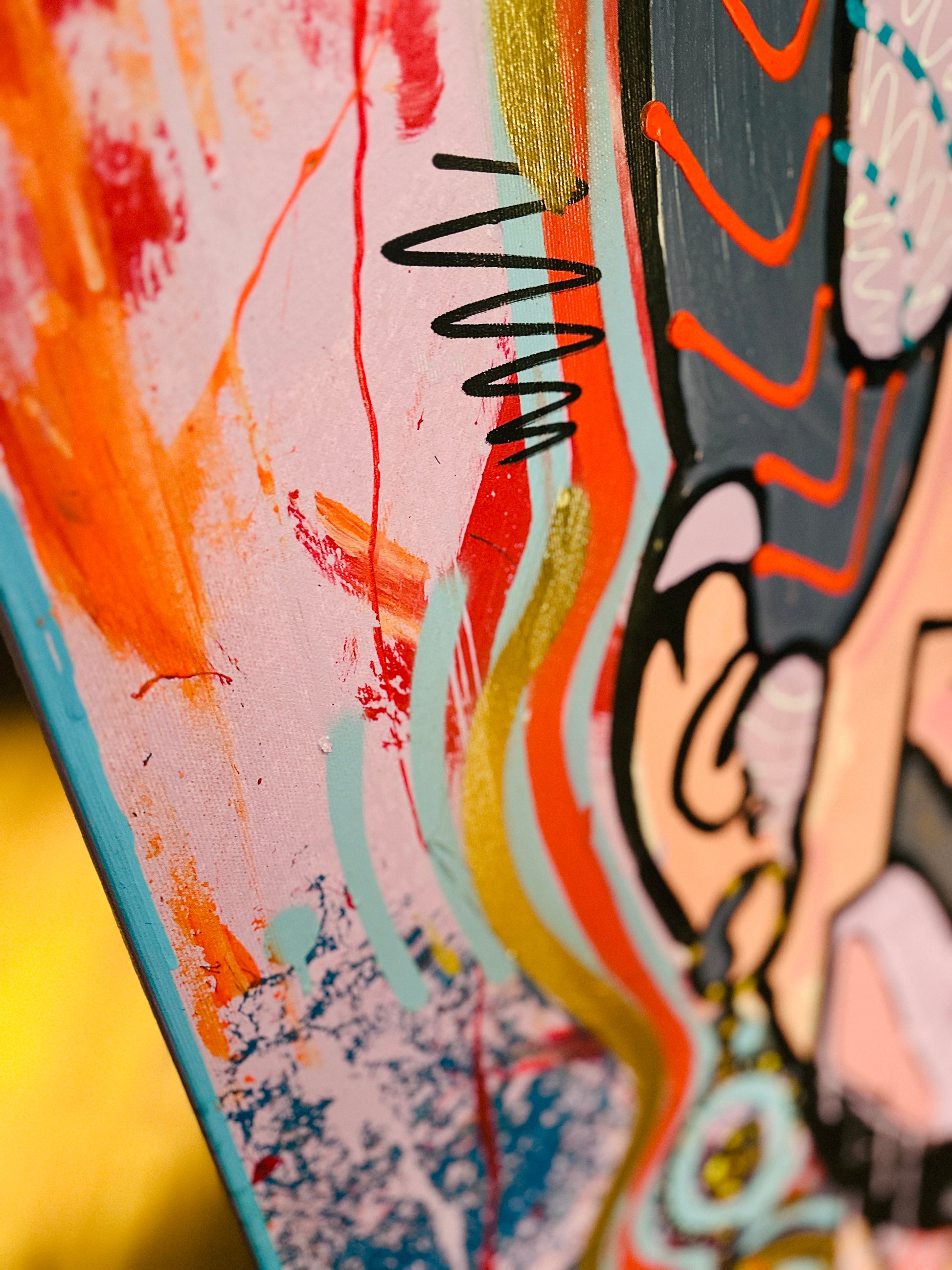 Ein expressives Portrait in Linien, Formen und Emotionen. Farben treffen auf Struktur - ein Spiel zwischen Abstraktion und Identität.