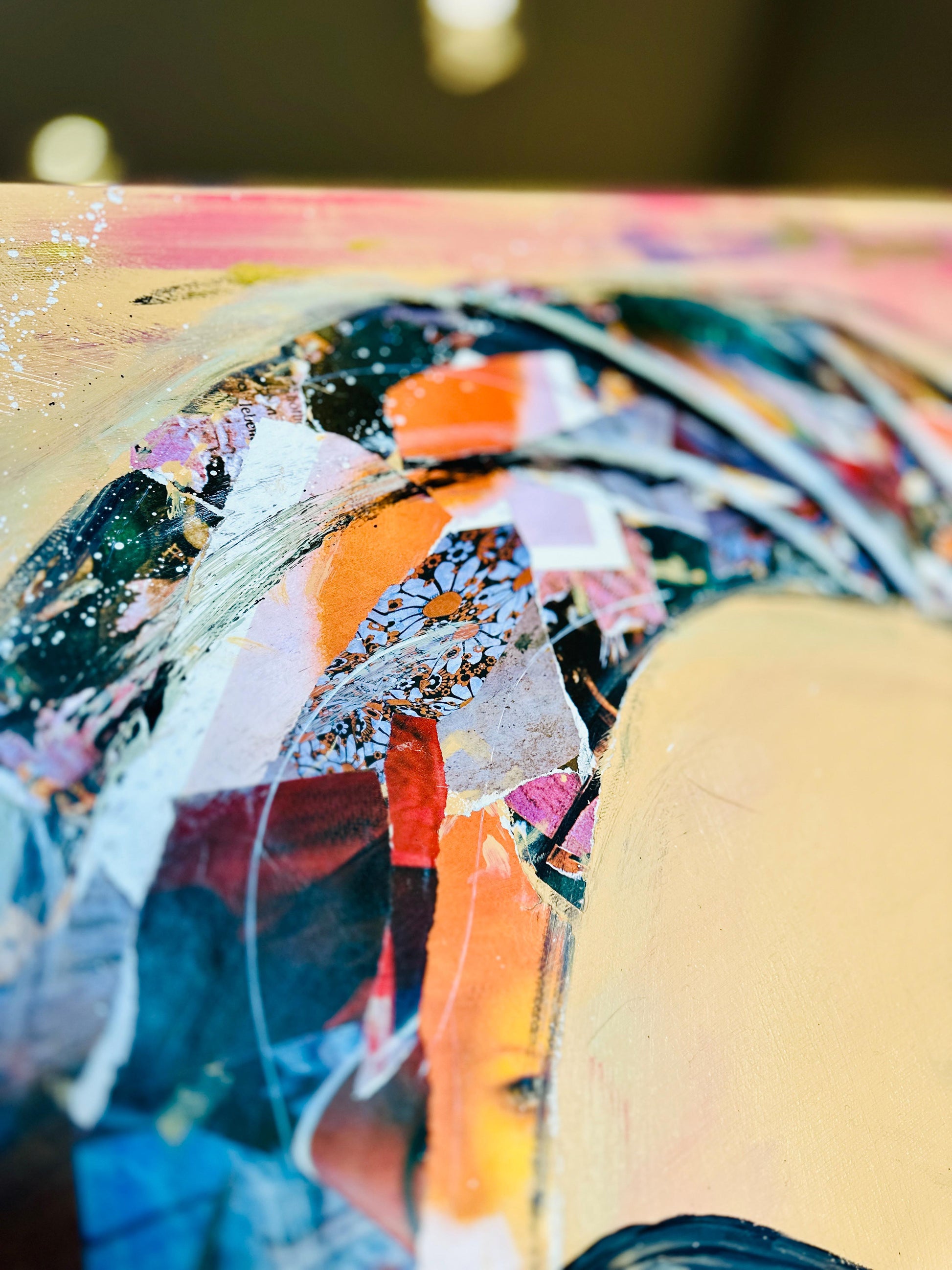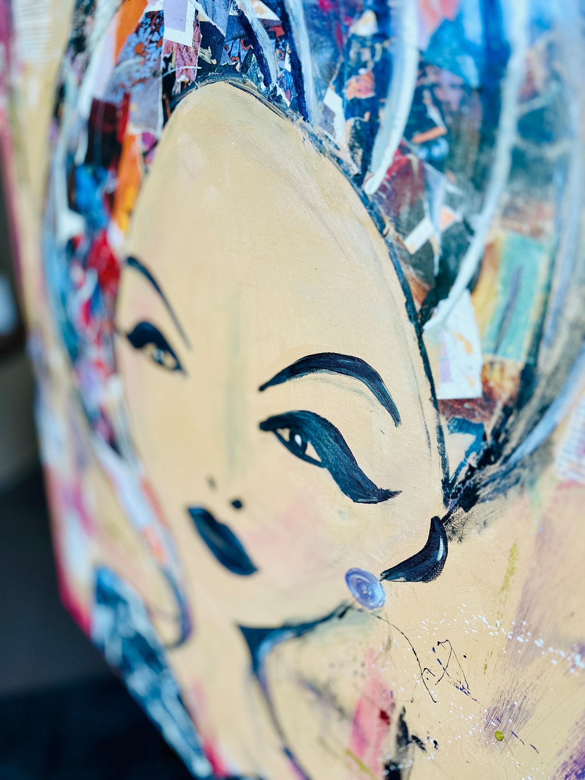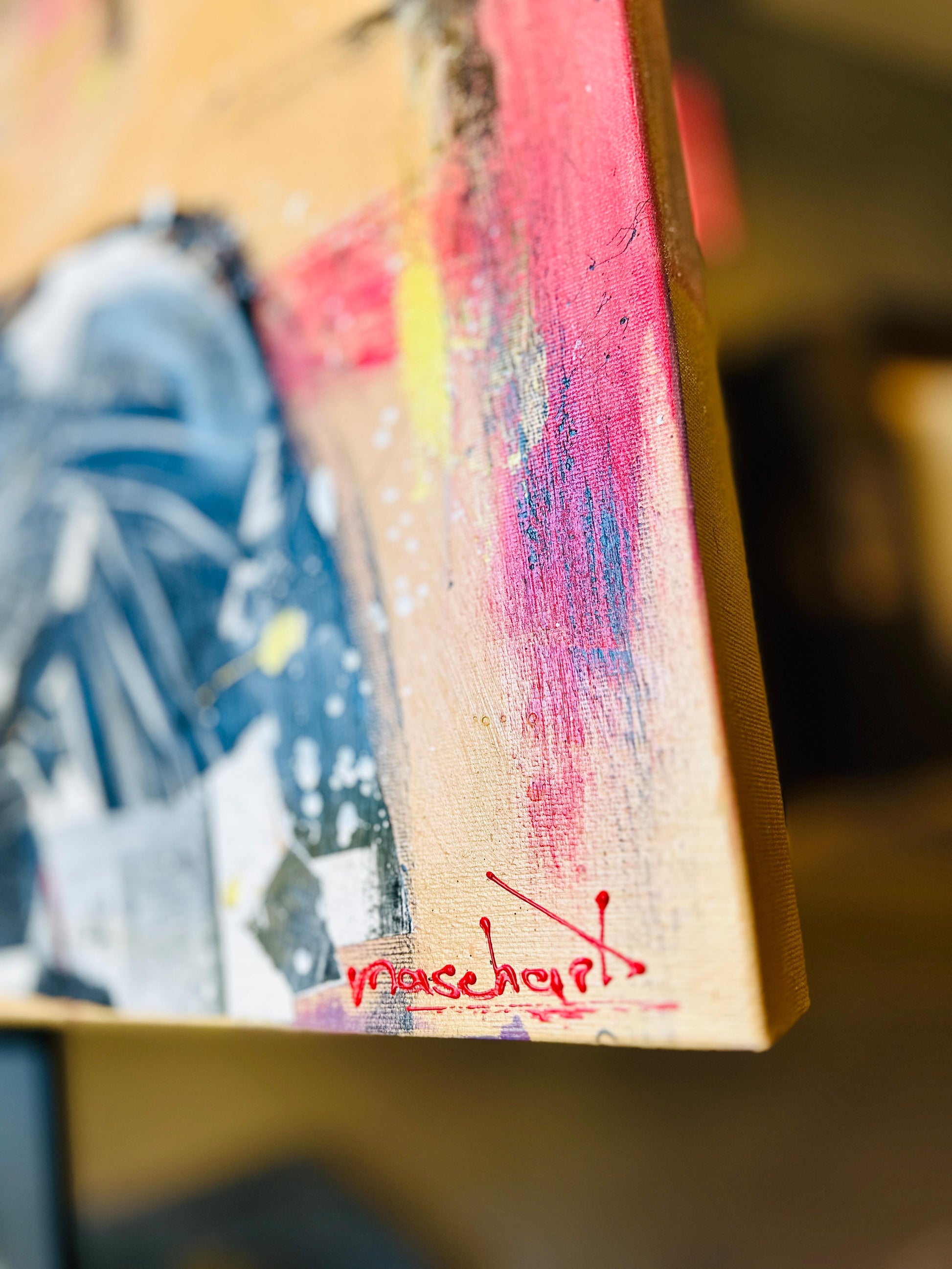 Dieses eindrucksvolle Kunstwerk vereint kraftvolle Linien mit einer dynamischen Farbkomposition. Die weibliche Figur strahlt Selbstbewusstsein, Stil und zeitlose Schönheit aus.